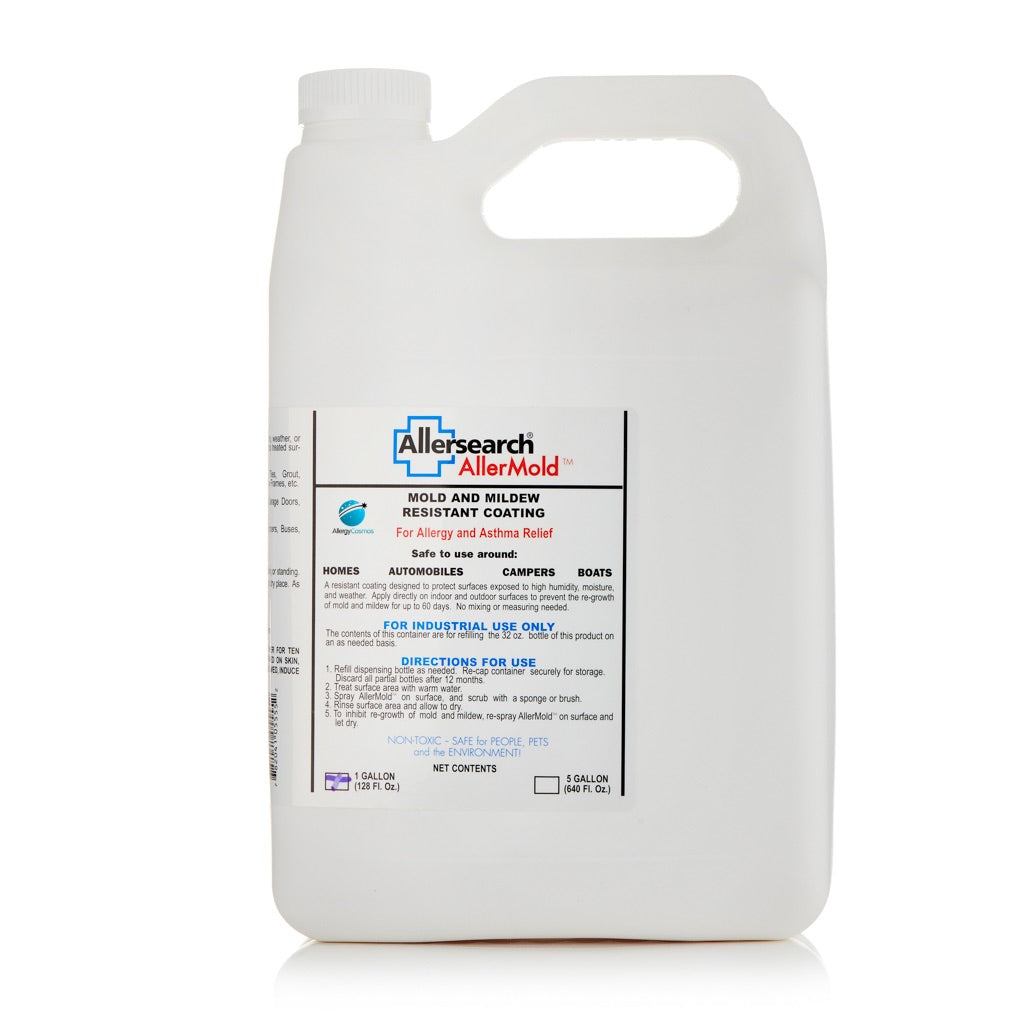 AllerMold is safely applied by spraying it on the fine mist setting and making an even and thorough application. Clean the area to be treated of any existing mould and mildew, and allow it to dry well. Then, spray AllerMold on the clean surface, leave on and allow it to dry. AllerMold sprays in a milky white color, but dries clear; this prevents the re-growth of mould and mildew.